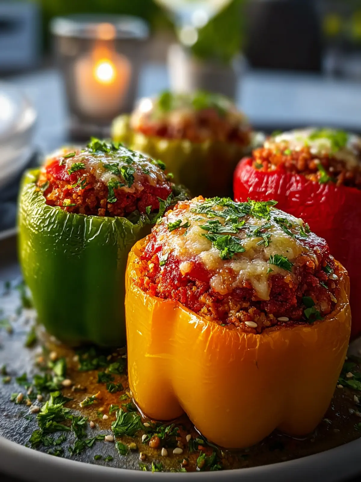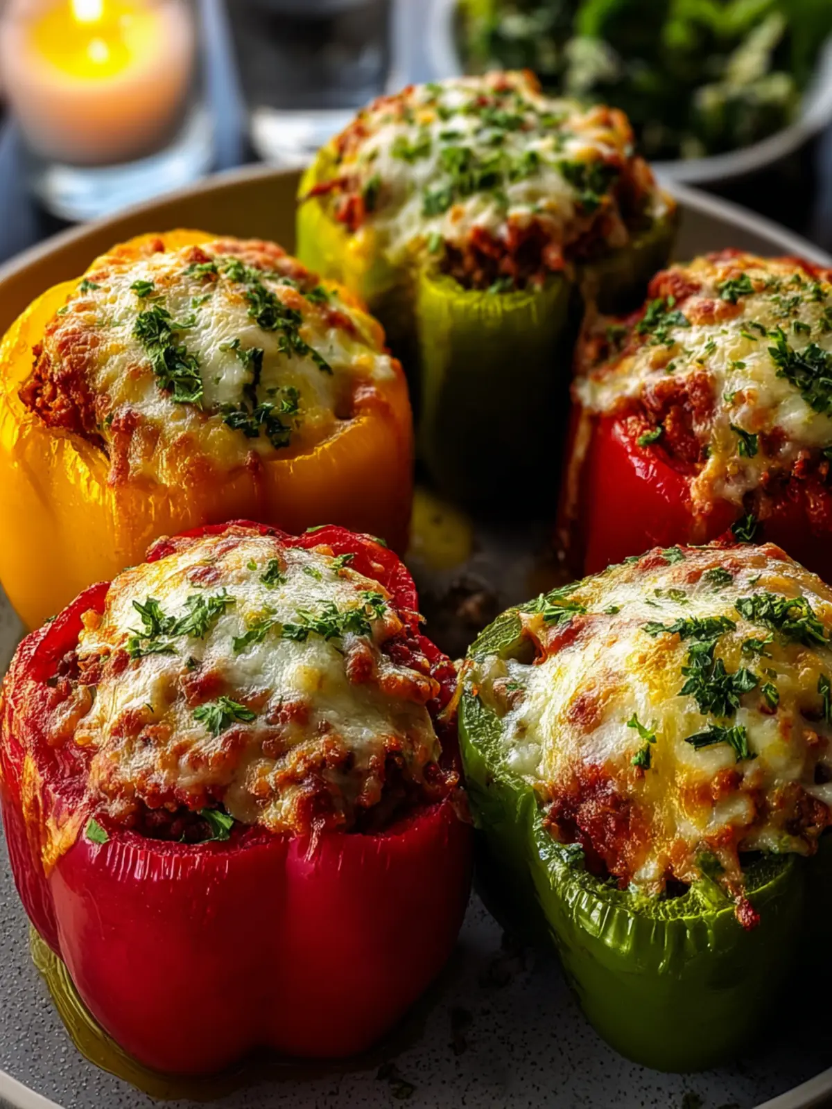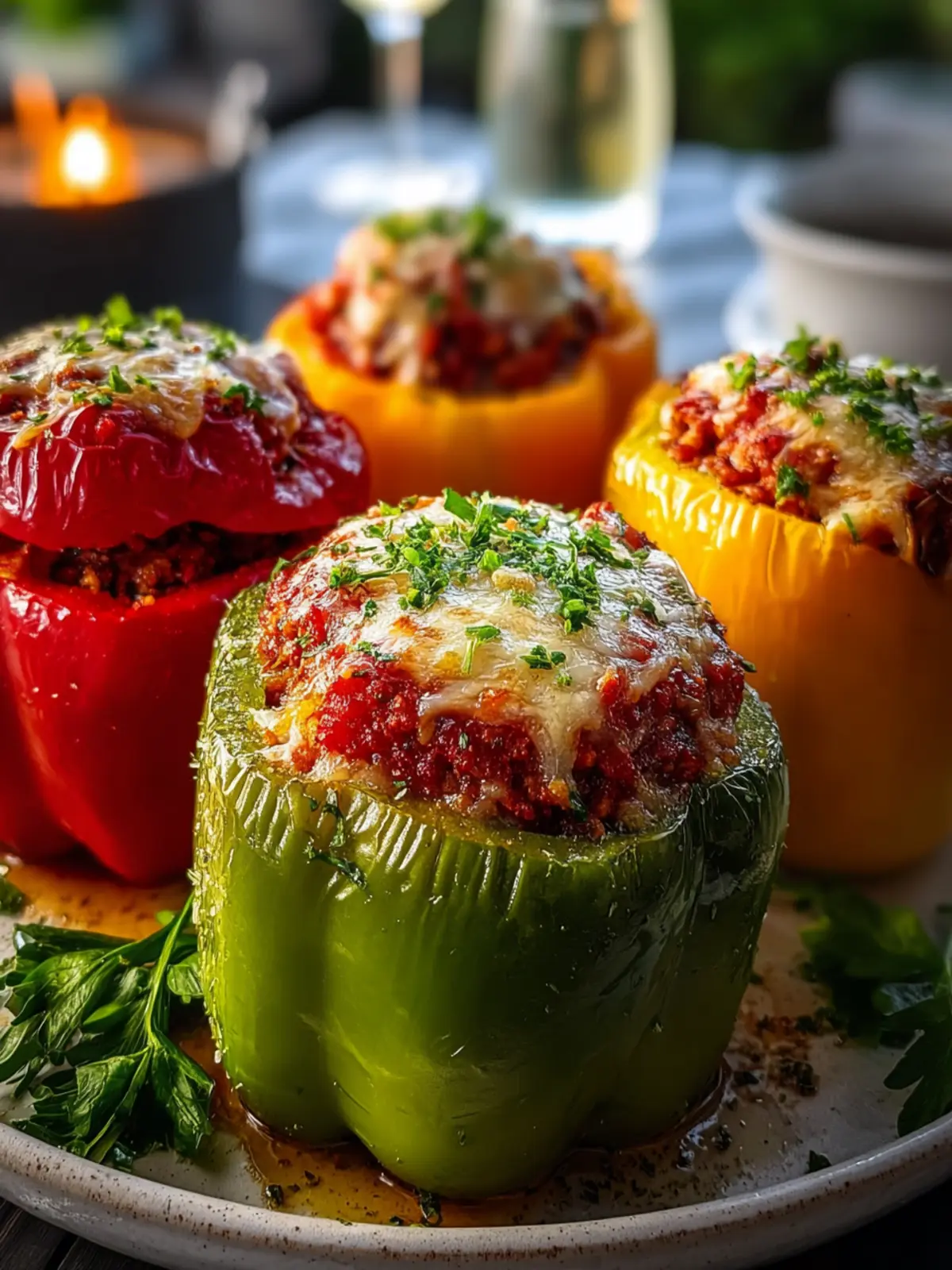 Deliciously stuffed bell peppers filled with a savory mixture of ground beef, rice, and cheese, perfect for a hearty meal.