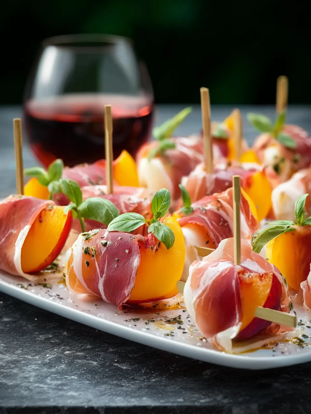 Flavor Fusion: The combination of salty prosciutto and sweet-sour peaches not only captivates the palate but keeps everyone guessing about the flavors. It’s a sophisticated take on classic flavor pairings that elevates your appetizer game.
