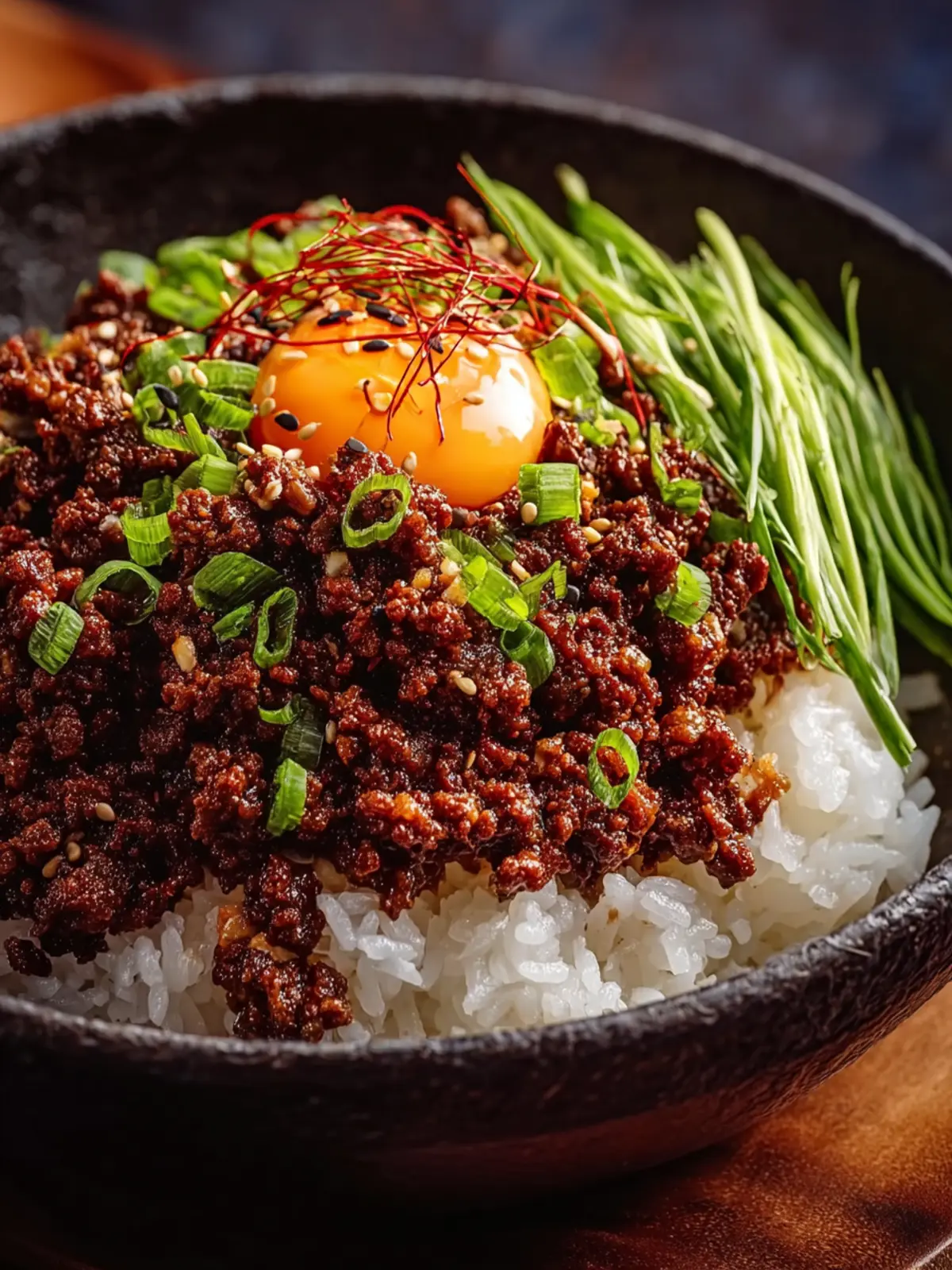 To make your Korean Ground Beef Bowl feel like a restaurant experience, consider topping it with: