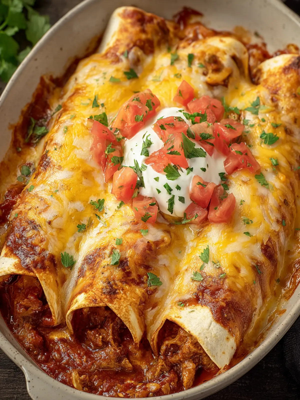 - These enchiladas can be topped with sour cream, fresh cilantro, or avocado for added flavor.