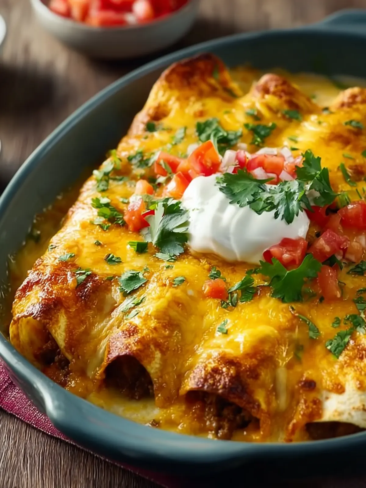 Whether you’re cooking for a crowd or just a cozy dinner for two, loaded beef enchiladas are a crowd-pleaser. Kids adore the gooey cheese, while adults appreciate the rich, savory flavors. You can easily customize them, so everyone gets their favorite toppings.