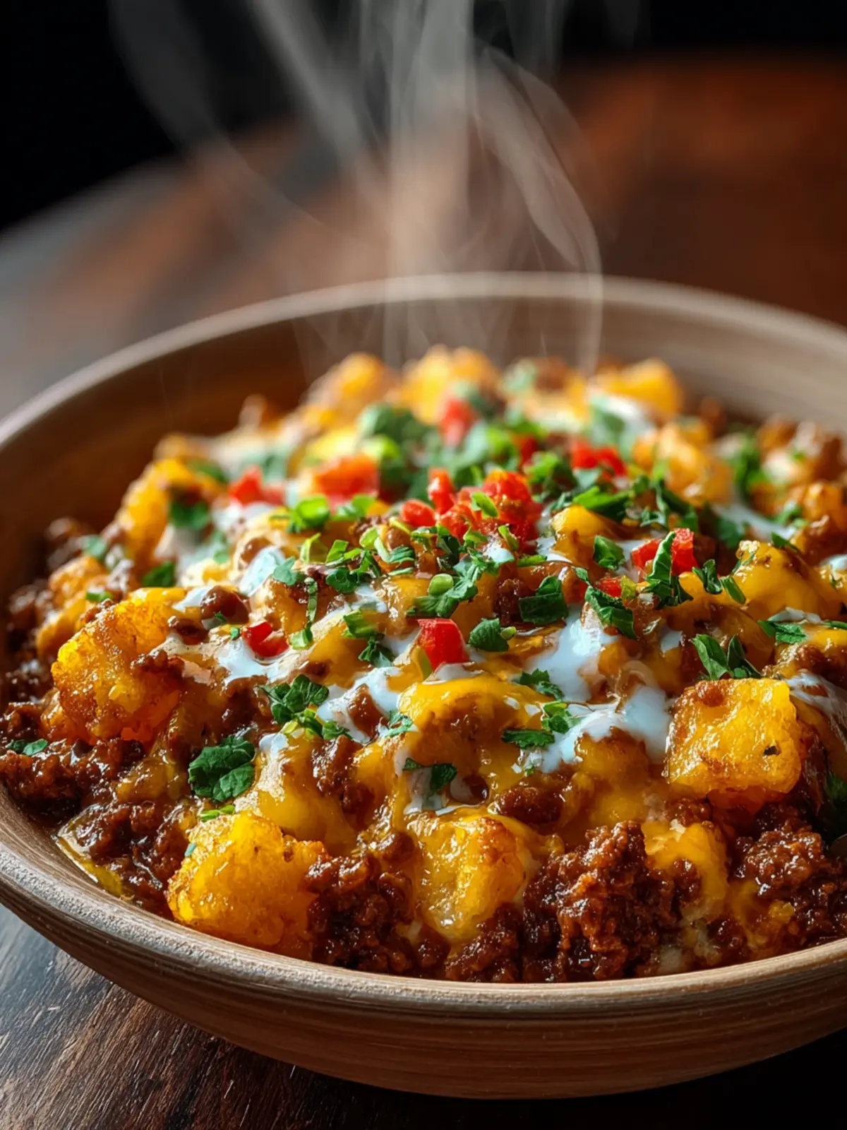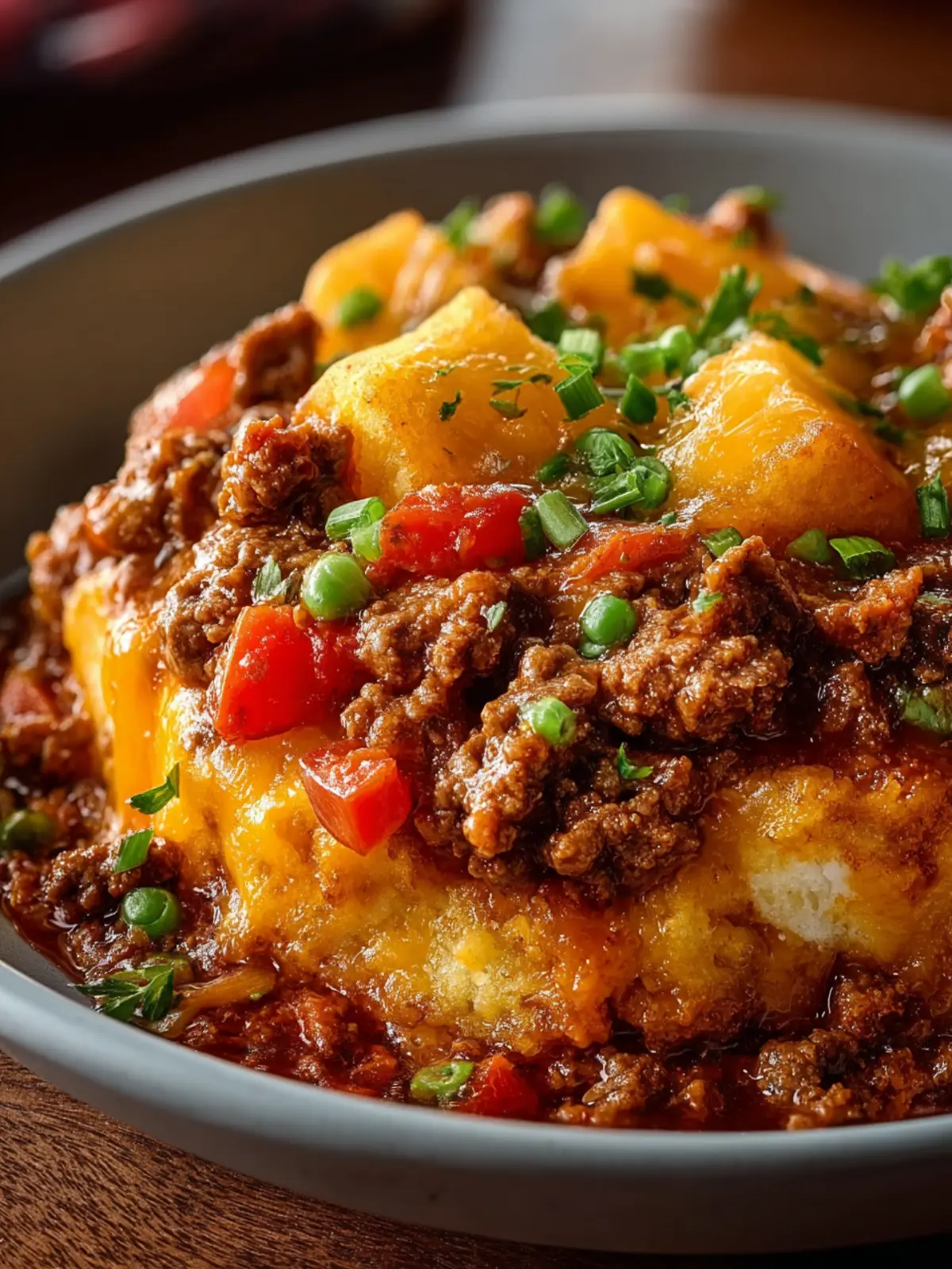 - Garnish and serve: Spoon the cowboy casserole into bowls or onto plates and top with chopped fresh parsley or sliced green onions. Add optional toppings like sour cream, jalapeños, or extra cheese if you’d like, then serve hot.