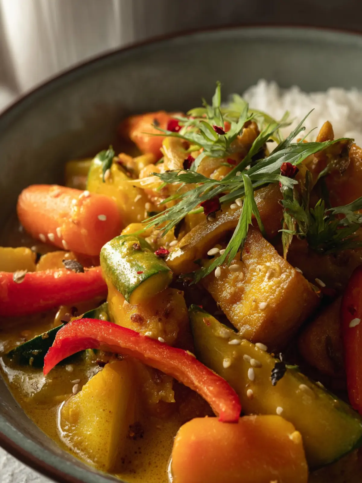 This dish isn’t just popular for its mouth-watering flavor; it’s also a feast for the eyes. The golden color of the curry, combined with the vivid greens of vegetables and fresh herbs, creates a visually stunning presentation that will impress any guest or loved one. Plus, it fits well into a conscious lifestyle, as it embraces wholesome plant-based ingredients, making it suitable for anyone looking to reduce their meat intake without sacrificing taste or satisfaction.